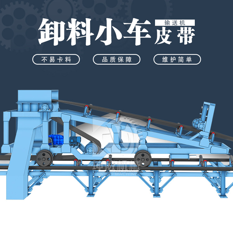 皮帶輸送機卸料小車在部件組成上和皮帶輸送機沒有太大差異。都是包含滾筒,輸送帶以及托輥等部分組成。主要在于可以移動的軌道和卸料行走車,屬于皮帶輸送機的配套設備。 皮帶